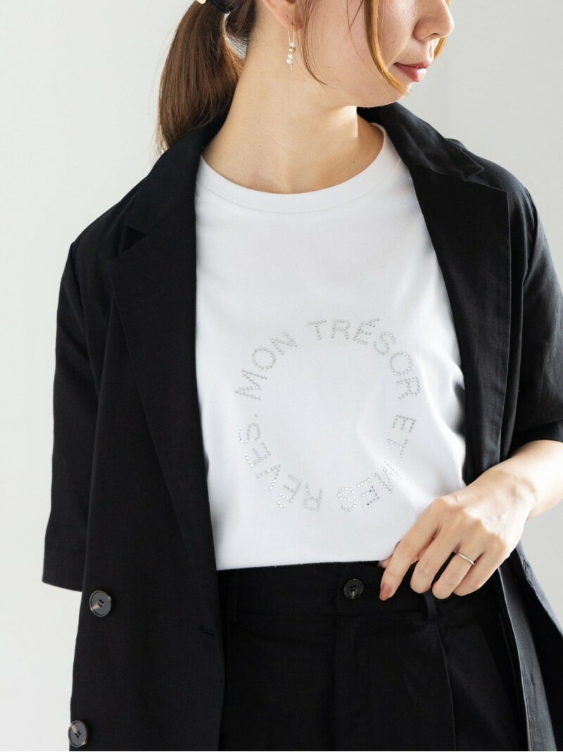 【SALE/20%OFF】GeeRA 綿100%ラインストーンドットTシャツ ジーラ トップス カットソー・Tシャツ ホワイト ブラック