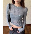 tシャツ ラインストーンロゴ シアーリブロンT レディース
