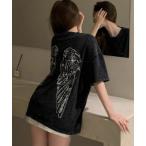 tシャツ バックラインストーン天使の羽 ビッグtシャツ レディース メンズ