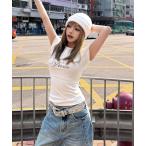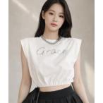 tシャツ 韓国風ラインストーン付き ショート丈Tシャツ/ レディース トップス/スポーティ レディース