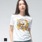 ヴェルサーチェ ジーンズ クチュール レディース Tシャツ 半袖 VERSACE JEANS COUTURE ロゴ エンブレム ラインストーン カットソー VCL80HAHE01 ブランド