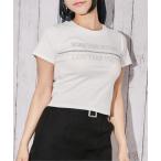 【10%OFFクーポン!4/17(金)9:59まで】LADY LIKE ラインストーンハートロゴコンパクトTシャツ トップス