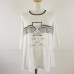 インポートロッサ Rossa カットソー Tシャツ 七分袖 チュール プリント ラインストーン 白 44 *T454 レディース