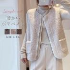 ボアベスト 秋 冬 レディース ベスト アウター ムートン もこもこ 暖か トリバーシブル トップス ジレ 前開き ボアベスト ノースリーブ きれいめ