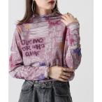 tシャツ BRODIAEA 無地×柄リバーシブルハイネックメッシュシアープルオーバー レディース