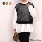 ベスト メッシュニット サマー レディース 薄手 ノースリーブ フィッシュネット サイドスリット風 トップス リバーシブル