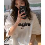 tシャツ レタリングラウンド半袖Tシャツ レディース