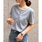 tシャツ ヘンリーネック ラウンドへム 半袖 トップス レディース