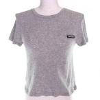 美品△MIUMIU ミュウミュウ 2024年 MJN466 リブ編み ジャージー 半袖Tシャツ コットン100% ロゴ グレー XS イタリア製 正規品 レディース