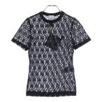 PATOU パトゥー 26SS ナイロン レース総柄 クルーネック 半袖Tシャツ カットソー ブラック レディース 26S-JE238-9965