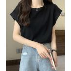 tシャツ パールボタン ヘンリーネック パフスリーブ半袖Tシャツ レディース