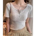 tシャツ ヘンリーネックリブ半袖Tシャツ レディース