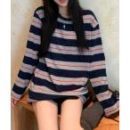 tシャツ ぐるり360°どこからだって映えちゃう。オーガニックコットン100%らくがき風刺繍 無地&ボーダー柄半袖Tシャツ レディース