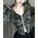 tシャツ カモフラ柄ダブルジップフーディートップス レディース