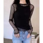 tシャツ ドット柄シアートップス チュールインナー レディース