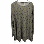 【新品】EVEX by KRIZIA 若干薄手 Tシャツ 猫柄 ネコ 長袖 ポリ100% 48(バスト92-96/身長160-164) グリーンカーキ 緑系×紺 レディース
