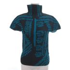 ミーイッセイミヤケ me ISSEY MIYAKE プリーツ カットソー Tシャツ 半袖 ハイネック 総柄 ボタニカル柄 黒 ブラック 青 ブルー ■GY18