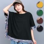 柄切替スクエアポンチョ /Tシャツ 接触冷感 ポンチョ トップス カットソー プルオーバー レディース 春 夏 半端袖 肩チロリー チロリアンテープ