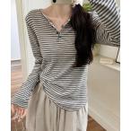 tシャツ ボーダー柄ヘンリーネックロングTシャツ レディース