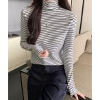 tシャツ ボーダー柄ハイネックTシャツ レディース