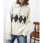 tシャツ ヘンリーネックアーガイル柄PO レディース
