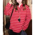 パーカー ボーダー柄フード付きニットTシャツ レディース