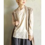 tシャツ フロッキー 水玉柄ドット チュールレース長袖カットソー レディース