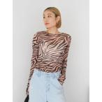 tシャツ ゼブラ柄シアーチュールロングスリーブTee レディース