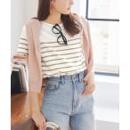 tシャツ オーガニックコットン100%。胸元ラメ糸ワンポイント刺繍 無地&ボーダー柄Tシャツ(半袖) レディース