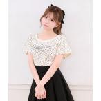 tシャツ 小花柄ワッフルリボンTシャツ/サーマルTシャツ レディース