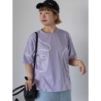 tシャツ 柄アソートフロッキープリントロングTシャツ レディース