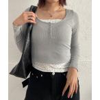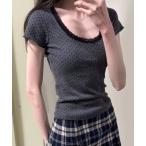 tシャツ ドット柄レーストリム半袖Tシャツ レディース