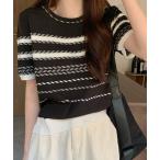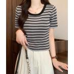 tシャツ レディース ボーダー柄サマーニットTシャツ レディース