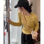 tシャツ 小花柄ボリューム袖プルオーバー レディース