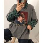 tシャツ フェイクレイヤードチェック柄長袖TEE レディース