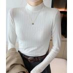 tシャツ 大人リラックススタイル。ワンポイント刺繍モックネック長袖Tシャツ(無地・ボーダー) レディース