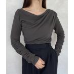 tシャツ 大人の上品シルエット。シャーリング長袖Tシャツ レディース