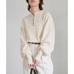 tシャツ SHIPS any:「洗濯機可能」ワッフル ヘンリーネック ラウンドヘム プルオーバー レディース