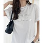 tシャツ 箔プリント ロゴ Tシャツ レディース