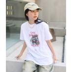 tシャツ 箔プリント半袖BIGTシャツ レディース
