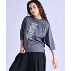 tシャツ 箔プリントロゴロングTシャツ レディース