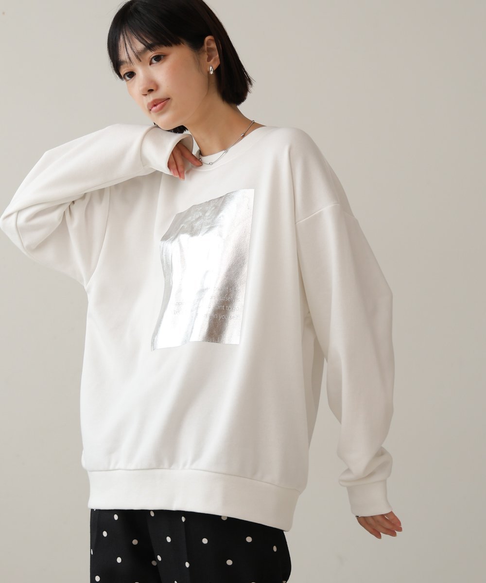 tシャツ 箔プリント裏毛プルオーバー レディース