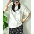 tシャツ 箔プリント×刺繍ロゴTシャツ レディース