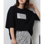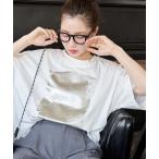 tシャツ オーバーサイズロゴフォトプリント半袖メタリック箔プリントTシャツ レディース