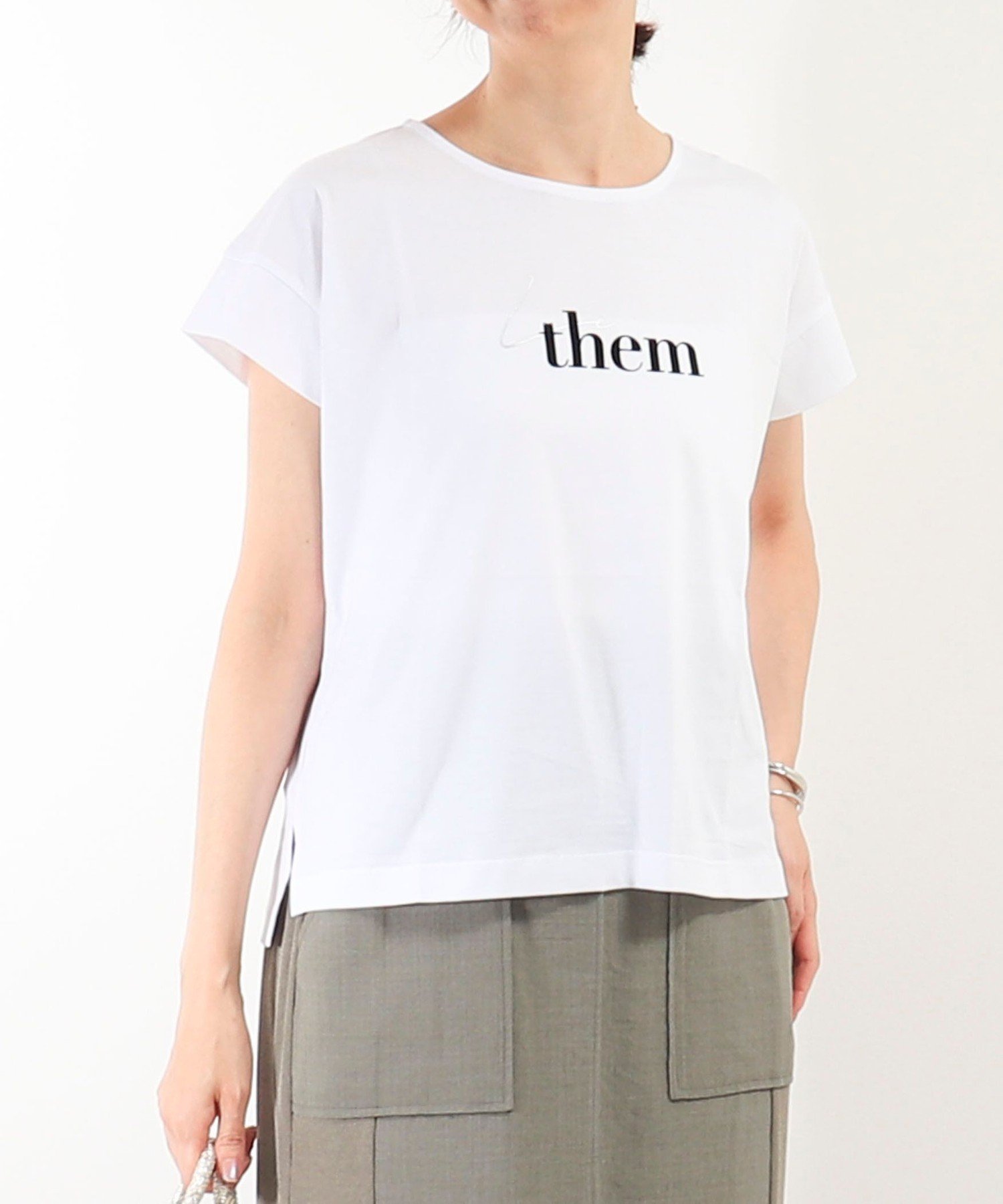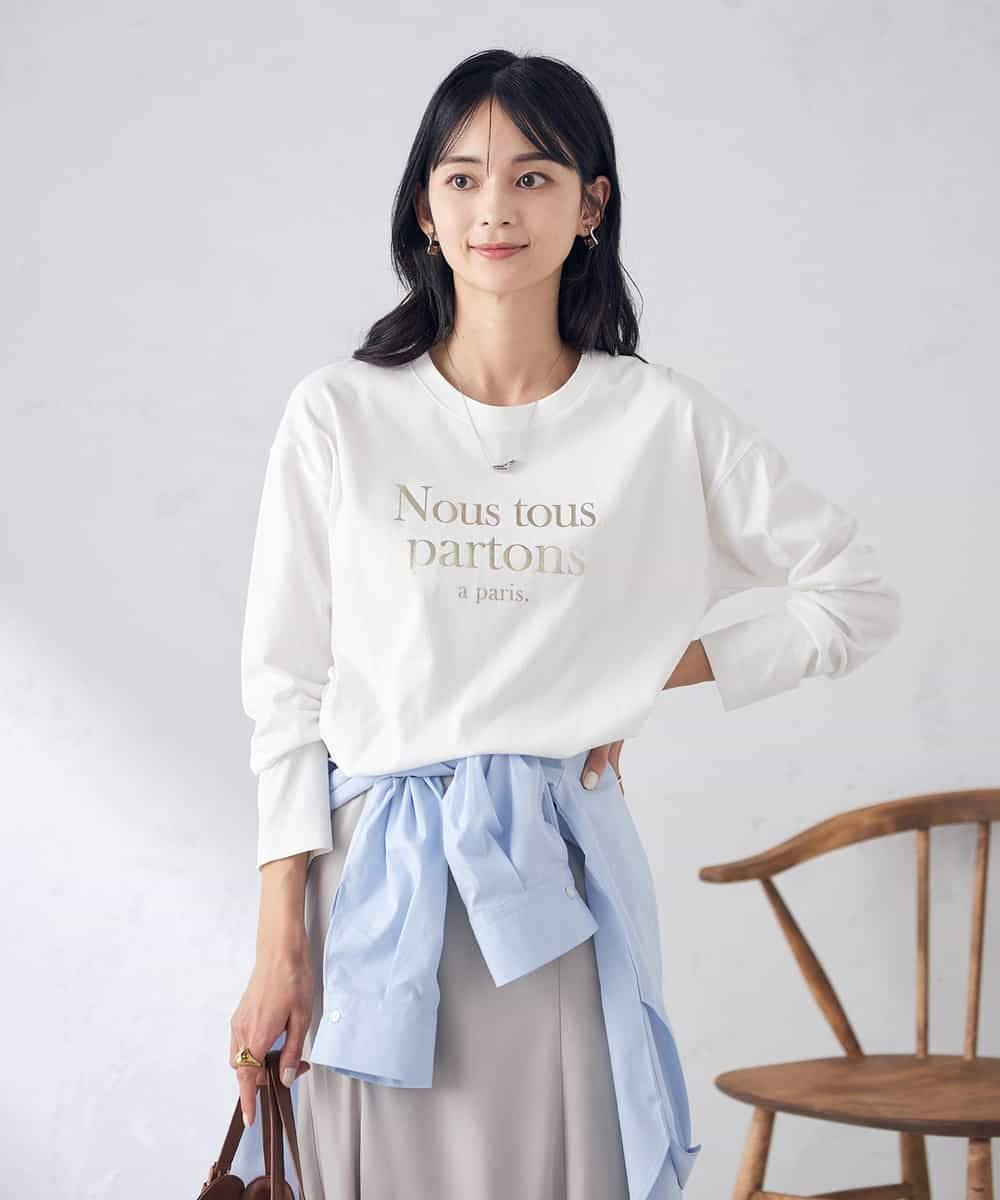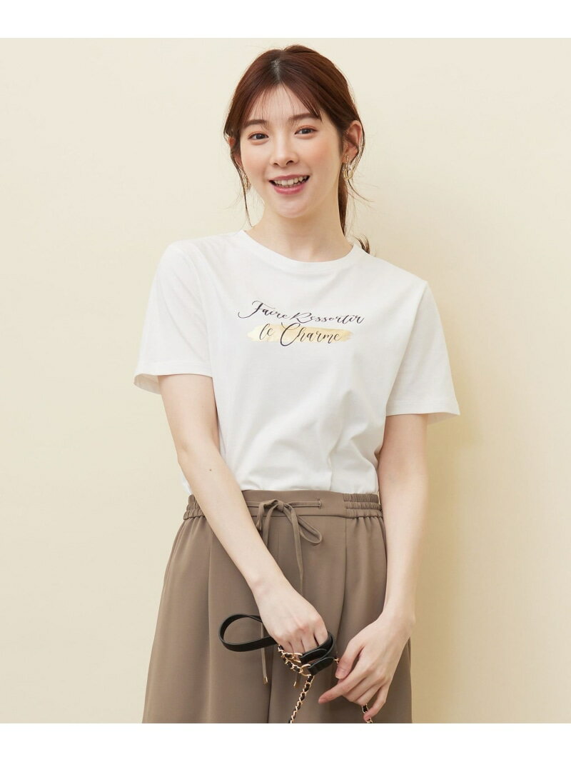 【SALE/40%OFF】Afternoon Tea LIVING タイポグラフィー箔プリントフレンチTシャツ アフタヌーンティー・リビング トップス カットソー・Tシャツ ホワイト