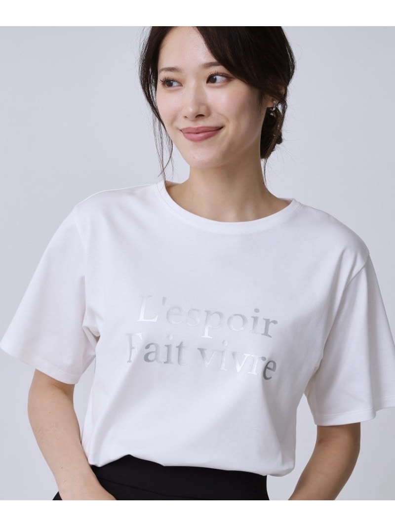 【SALE/50%OFF】la.f... 箔プリントロゴTシャツ≪手洗い可能/吸水速乾/接触冷感≫ ラ・エフ トップス カットソー・Tシャツ ホワイト ブラック【送料無料】