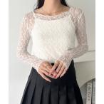 tシャツ レースシアー長袖トップス レディース