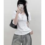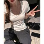 ≪ マラソンクーポン配布中 ≫ 半袖 レディース トップス Tシャツ Uネック 深Uネック 細リブ [C7463] 20代 30代 40代 半袖 リブ 50代 60代 70代 C7316 C7665 L LL M XL イエベ ブルべ インナー 春 夏 夏服 骨スト 骨格ストレート 二の腕カバー【送料無料】