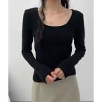 tシャツ 「 M L XL 選べるサイズ 」 深Uネック細リブ長袖Tシャツ レディース