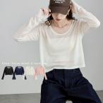 シアーフライスUネックロンT トップス Tシャツ ロンT 長袖 シアー ショート丈 クロップド丈 短丈 ショートT